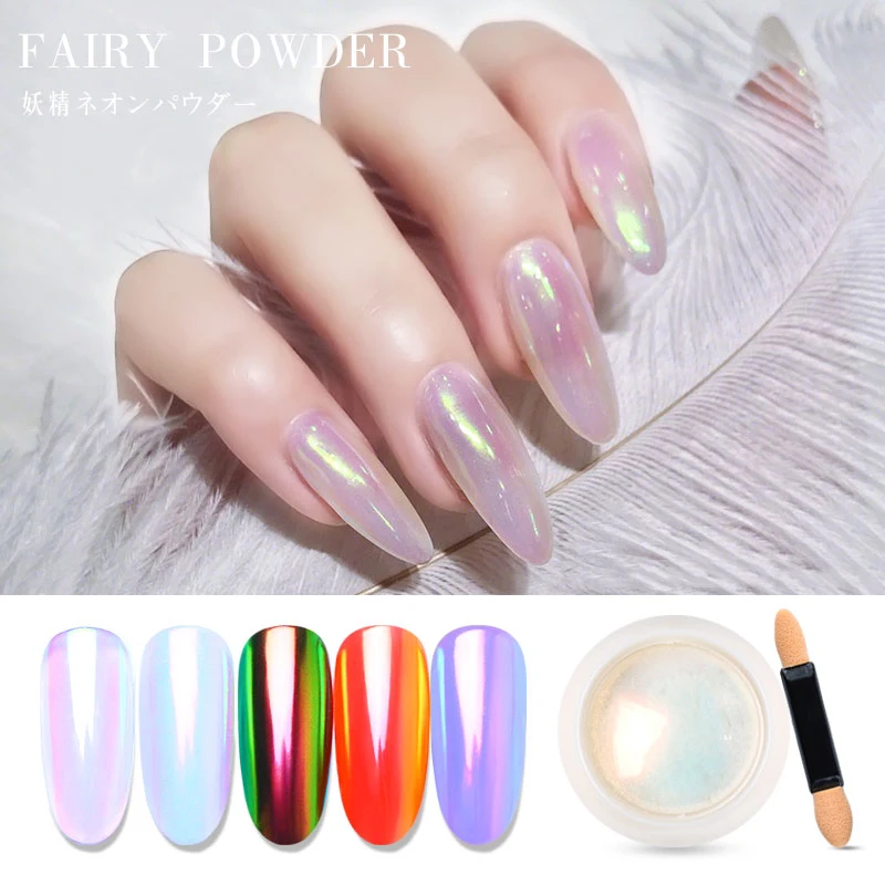 1 Box Nude Half-Transparent Aurora Neon Nail Art Powder Mermaid Mirror Effect Nail Chrome Pigment Manicure Nail Art Decoration