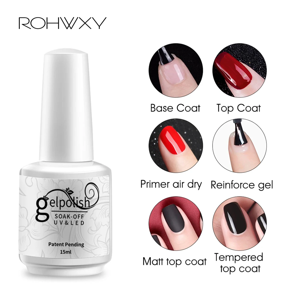 Related Product for ROHWXY Gel Nail Polish 15 ML LED UV Base And Top Coat Long-lasting Tempered Manicure Top Reinforce