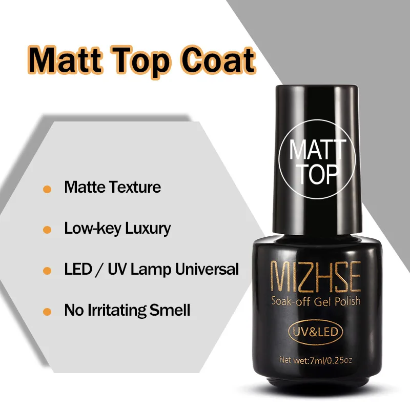 Related Product for MIZHSE Matt Top Coat Matte Nail Polish Soak Off UV LED Nail Top Coat For Nail Design Vernis Ongle M